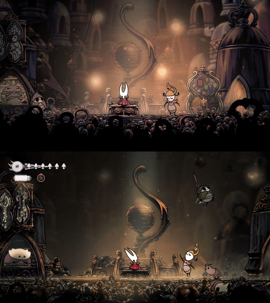 มอสส์แบ็ก ผู้คลั่งไคล้ Hollow Knight และนักพัฒนาอินดี้ เป็นคนแรกที่สังเกตเห็นภาพสกรีนช็อตใหม่ของ Silksong พร้อมเปรียบเทียบภาพเก่าและภาพใหม่ของเมือง Bellhart ที่เต็มไปด้วยฝุ่น กราฟิกที่มีคอนทราสต์สูงขึ้น และยังแสดงให้เห็นถึงการเปลี่ยนแปลงเล็กน้อยในรายละเอียดมากขึ้น