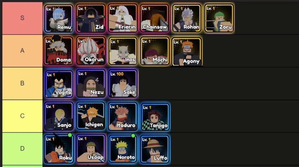 Anime Saga Tier List จัดอันดับทุกยูนิตจาก S ถึง D