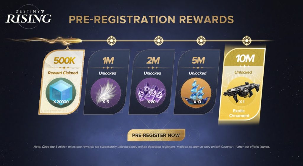 NetEase Games ได้ประกาศเปิดให้ลงทะเบียนล่วงหน้าเกม Destiny: Rising บน App Store ทั่วโลก แล้ววันนี้ เข้าไปลงชื่อลุ้นรับรางวัลสุดพิเศษเมื่อยอดการลงทะเบียนล่วงหน้าถึงเป้าหมายที่กำหนดไว้ ส่วนชาว Android ไปลงทะเบียนล่วงหน้าผ่านทาง Website Destiny: Rising รอกันก่อนได้เลย