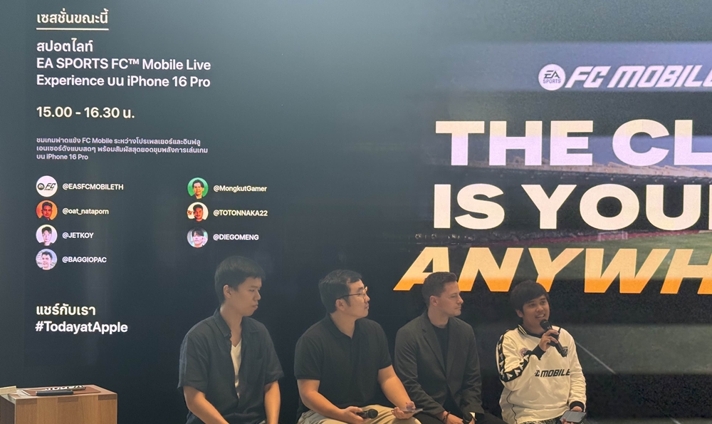 วันนี้ทาง Apple ได้มีการจัดงานสุดพิเศษของเกม EA SPORTS FC Mobile เกมฟุตบอลบนมือถือชื่อดัง ในเดือนที่แล้วมีการแข่งขันระดับนานานชาติมาและประเทศไทยของเราก็ได้แชมป์อีกด้วย ทำให้มีการจัดงานพิเศษ EA SPORTS FC Mobile Live Experience ณ ICONSIAM ที่เชิญเหล่า Pro Player และ Influencer ของเกมดังกล่าวมาร่วมสร้างความสนุกและแชร์ประสบการณ์ให้กับผู้เข้าร่วมงาน