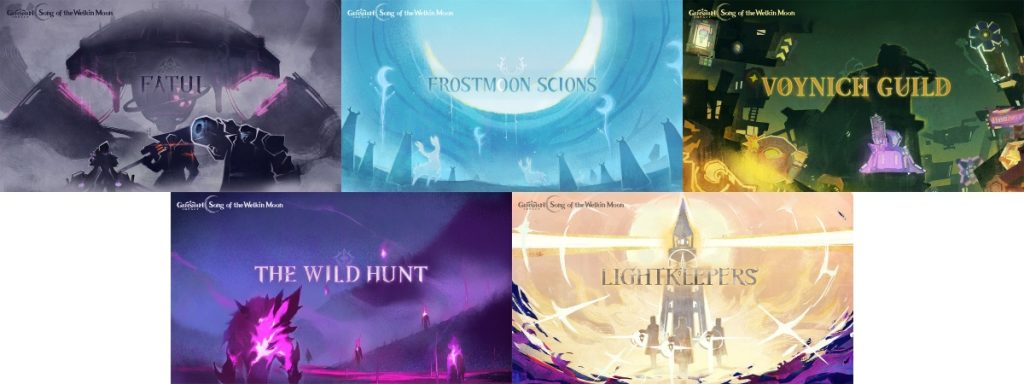 นอกจาก Varka และอัศวิน Favonius แล้ว Nod-Krai ยังเป็นศูนย์รวมของกลุ่มต่างๆ ที่มีเป้าหมายและความขัดแย้งกัน HoYoverse ได้ให้รายละเอียดเกี่ยวกับ 5 กลุ่มหลักที่จะมีบทบาทสำคัญ