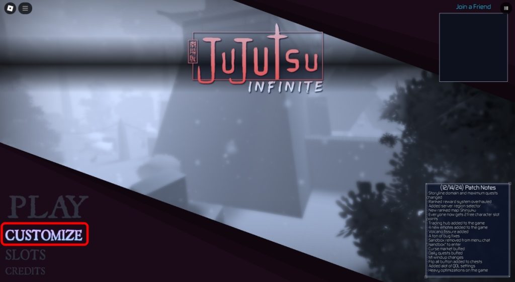 1. เปิดเกม Jujutsu Infinite บน Roblox