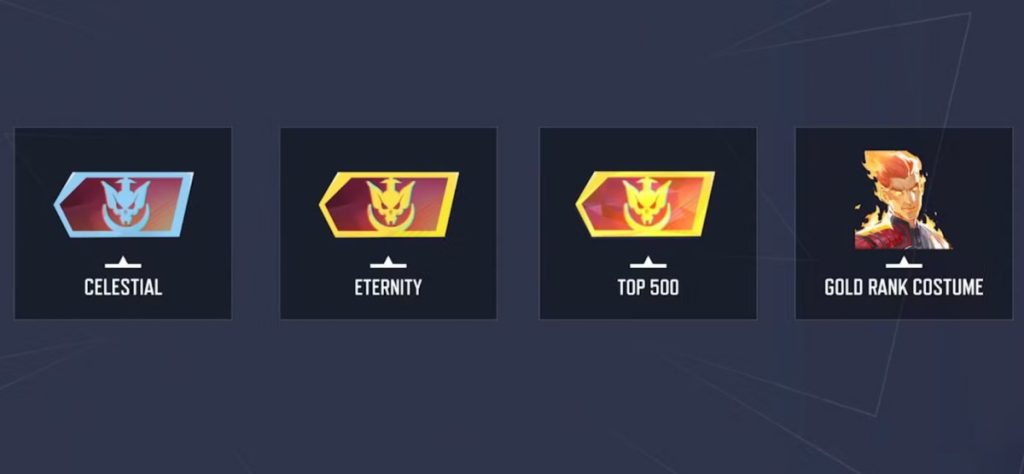 - ยิ่งแรงก์สูง เช่น Grandmaster หรือ Celestial จะได้สกินเดียวกัน แต่แถมตราเกียรติยศเงินหรือทองไว้โชว์คนอื่นด้วยนะ