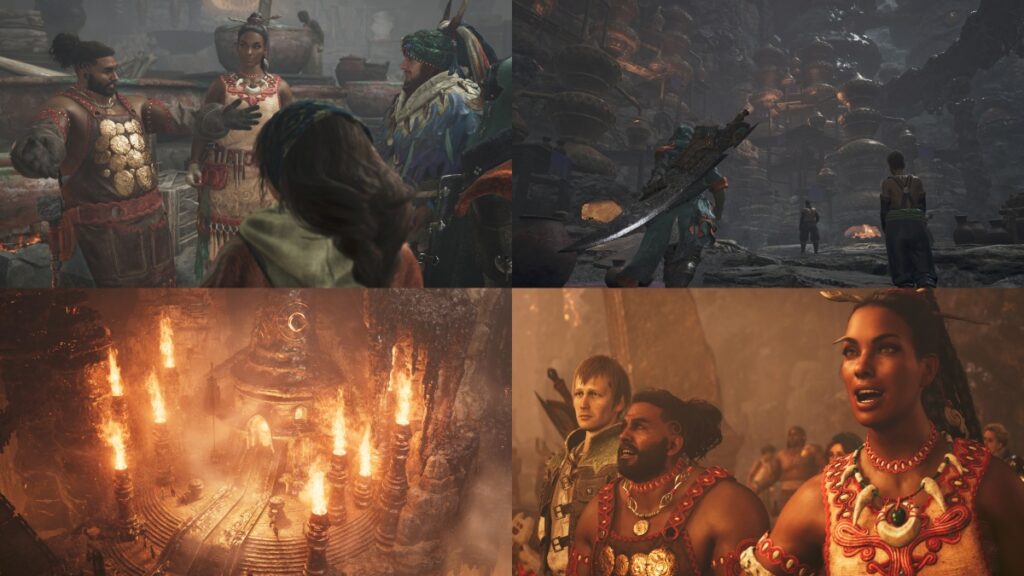 ดินแดนใหม่ “Oilwell Basin” ใน Monster Hunter Wilds เป็นพื้นที่ที่น้ำมันซึมและสะสมอยู่ตามธรรมชาติ บางครั้งก็เกิดไฟลุกไหม้อย่างรุนแรงในปรากฏการณ์ที่เรียกว่า “Firespring” ที่นี่มีหมู่บ้าน Azuz ซึ่งเป็นศูนย์กลางการหลอมแร่และกระดูก ชาวบ้านที่นี่เชี่ยวชาญการกลั่นน้ำมันและการตีเหล็กที่สืบทอดกันมาตั้งแต่โบราณ