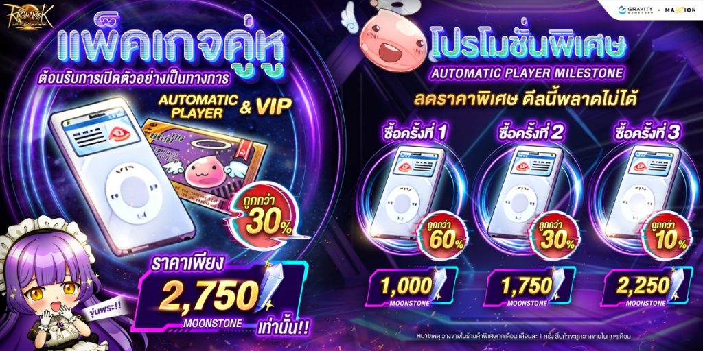แพ็กเกจคู่หู Automatic Player&VIP ลดถึง 30% และโปรโมชั่น Automatic Player Milestone ลดสูงสุดถึง 60%