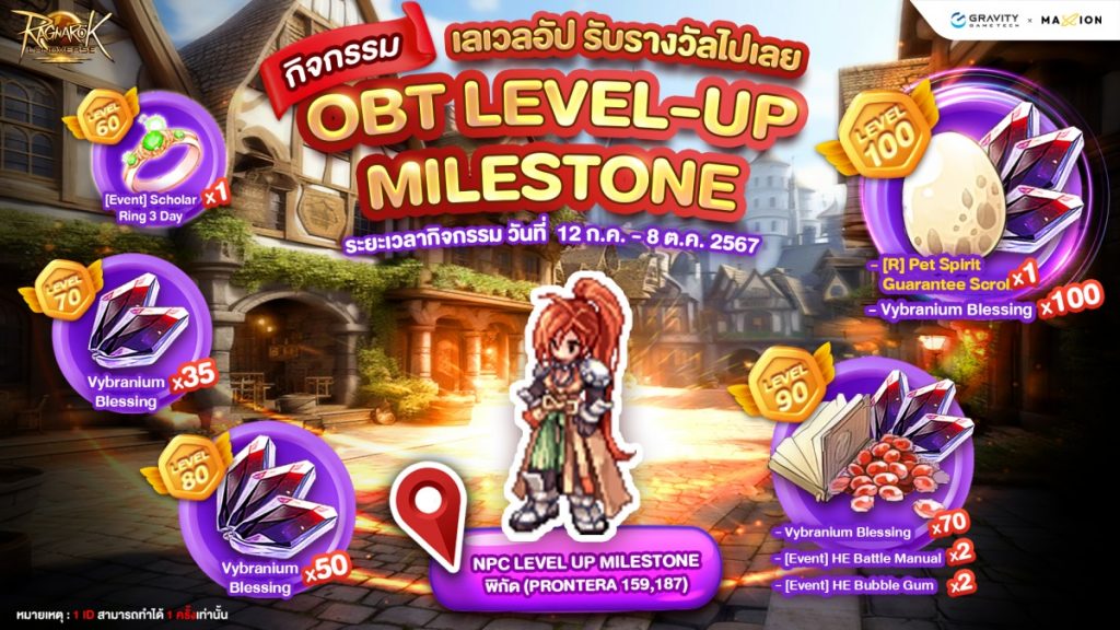 - ตำแหน่ง NPC Level-UP Milestone: เมือง Prontera พิกัด 162, 190