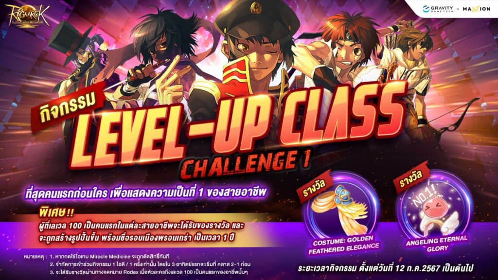 - กิจกรรมนี้ ไม่มีระยะเวลาจำกัด เพียงเลเวล 100 เป็นคนแรกของแต่ละอาชีพเท่านั้น!! เริ่มตั้งแต่ 12 ก.ค. 2567 (14.00 น.) เป็นต้นไป