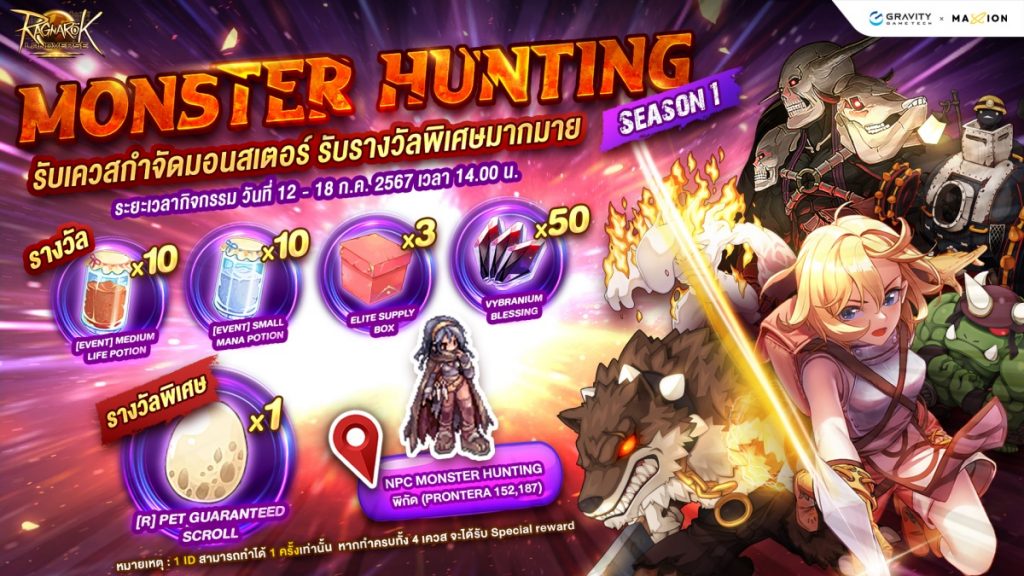 - ตำแหน่ง NPC Monster Hunting: เมือง Prontera พิกัด 152, 187