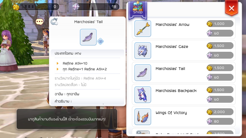 ต่อมา Marchosias’ Tail หรือหางหมาป่าที่เป็นไอเทมสุดฮิตที่ต้องมีทุกคนและถือว่าเป็นไอเทมที่ดีแล้วสามารถหาใส่ได้ง่ายๆ โดยวิธีการหา Marchosias’ Tail จะไม่ได้เป็นการหาวัตถุดิบแล้วแบบภาพมาทำ แต่จะต้องนำแต้ม PVP และเหรียญ Silver มาแลก โดยแต้ม PVP จะสามารถหาได้วันละ 300 ใน 1 อาทิตย์สะสมสูงสุได้ 1000 ดังนั้นก็อย่าลืมไป เล่นโหมด PVP แล้วฆ่าคนให้ได้เพื่อสะสมนำมาแลกของเหล่านี้ด้วย
