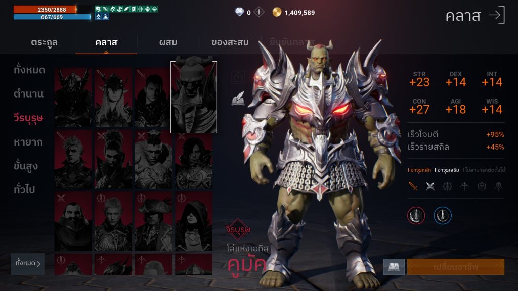 - Orc – แข็งแกร่ง เน้นพลังชีวิตและพลังโจมตีที่หนักหน่วงเหมาะโจมตีประชิด