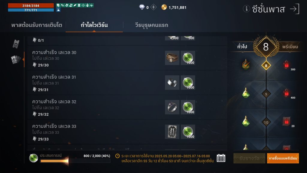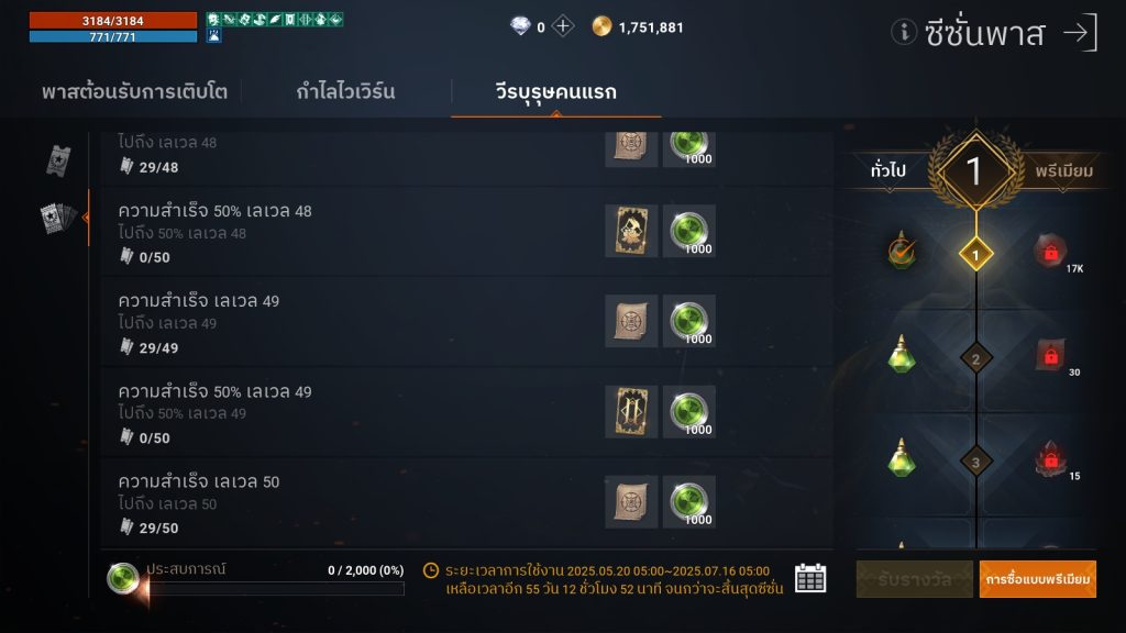 สิ่งที่น่าสนใจคือ Pass ช่วงแรกของเกมแจกไอเทมเยอะมาก ไม่ว่าจะเป็นพวกใบสุ่มอุปกรณ์, หินอัปเกรด, ยาเพิ่มค่าพลัง หรือแม้แต่ไอเทมช่วยให้เก็บเลเวลไวขึ้น เช่น คัมภีร์ตีบวกอุปกรณ์ บัพ และอื่นๆ อีกเพียบ ซึ่งทั้งหมดนี้ผู้เล่นสามารถเก็บได้โดย ไม่ต้องเติมเงินเลย แค่เล่นก็ได้รับฟรี พูดง่ายๆ คือถ้าใครขยันทำ Pass ก็มีของดีติดตัวใช้ยาวๆ ถึงช่วงกลางเกมแน่นอน เป็นระบบที่เหมาะกับทั้งผู้เล่นใหม่และสายฟรีสุดๆ แถมยังทำให้เกมมีเป้าหมายเล็กๆ ให้ทำทุกวัน