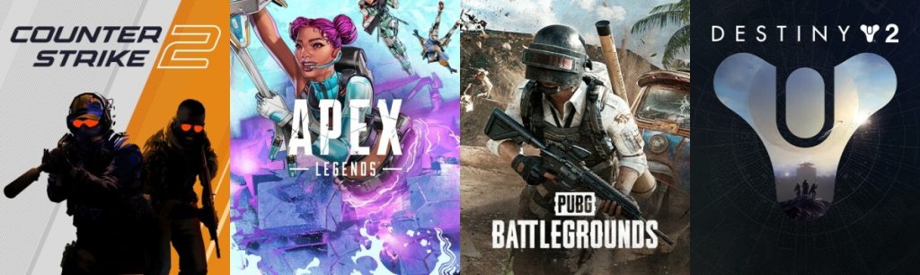 สายเกม Live-Service อย่าง Apex Legends, Counter-Strike 2, PUBG Battlegrounds, และ Destiny 2 ยังคงติดอันดับแบบไร้คู่แข่ง แฟน ๆ สายยิงชอบแบบไหน ก็เลือกไปลุยกันได้เลย