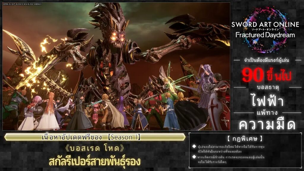 หากผู้เล่นถูกโค่นลงและไม่ได้รับการฟื้นคืนชีพ การต่อสู้จะสิ้นสุดลงทันที และจะไม่ได้รับรางวัลใดๆ ติดตามรายละเอียดเพิ่มเติมได้ที่ Website SWORD ART ONLINE Fractured Daydream