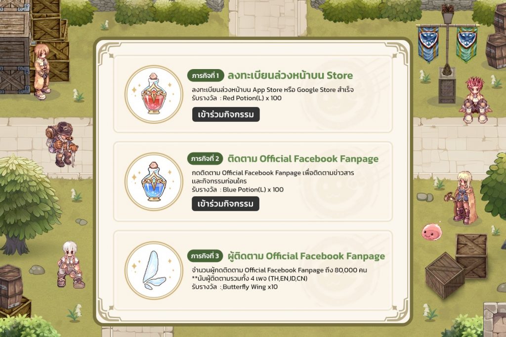 เมื่อลงทะเบียนล่วงหน้าสำเร็จแล้ว สามารถทำภารกิจพิเศษเพื่อรับไอเทมเพิ่มเติมได้อีกด้วย