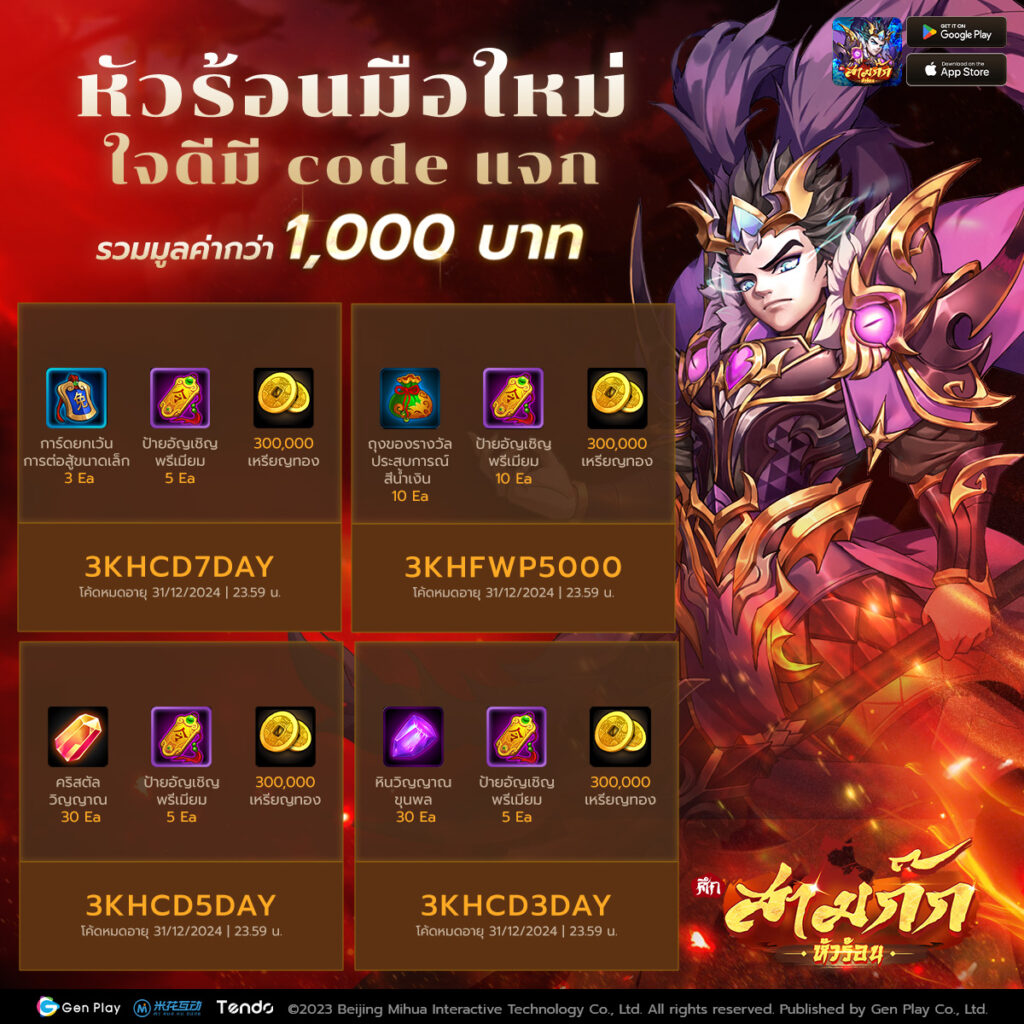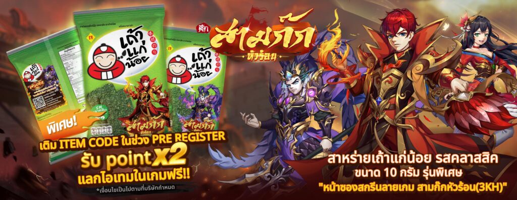 แถมอีกหน่อยเอาใจสายขนมเพราะทาง สามก๊กหัวร้อน 3KH ได้จับมือกับทาง “เถ้าแก่น้อย” มอบ Code สำหรับลุ้นรางวัลมากมาย เพียงแค่เติม Code แลกไอเทมจากแคมเปญรางวัลสูงเป็น Samsung S24 Ultra เลย อร่อยทั้งขนมแล้วได้ไอเทมอีกคุ้มยิ่งกว่าคุ้ม