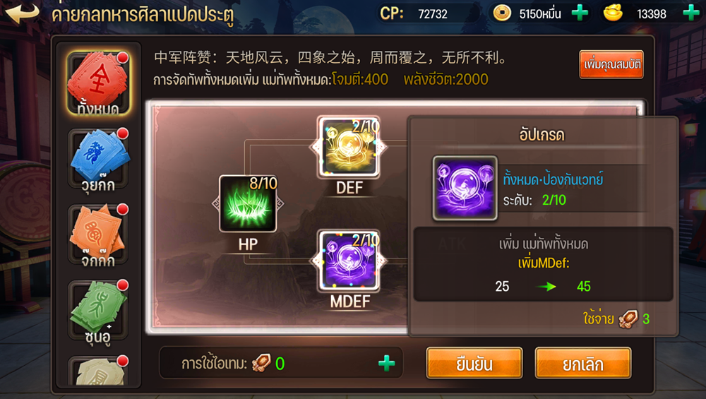 หลักสำคัญอีกหนึ่งอย่างที่ผู้เล่นไม่ควรมองข้ามก็คือการเพิ่มค่า BP หรือค่าพลังของทีมให้เยอะขึ้นเรื่อยๆ ภายในเกม “สามก๊กหัวร้อน 3KH” ก็จะมี Content หลายๆ ส่วนที่เกี่ยวข้องกับค่าพลังการต่อสู้ ไม่ว่าจะเป็นการพัฒนาตัวละครในด้านต่างๆ ไม่จะเป็น เลเวลของตัวละคร สกิล หรือ การเพิ่มดาว ก็จะช่วยเพิ่มค่า BP ให้ ยังไม่นับรวมกับ “อาวุธ” อุปกรณ์สวมใส่อื่นๆ อีกที่ไม่ได้แค่หาเกรดสูงๆ มาใส่ก็พอภายในยังมีการอัปเดตในส่วนอื่นๆ อีกที่จะทำให้ตัวละครของคุณเทพขึ้นและค่าพลังการต่อสู้มากกว่าคนอื่นๆ