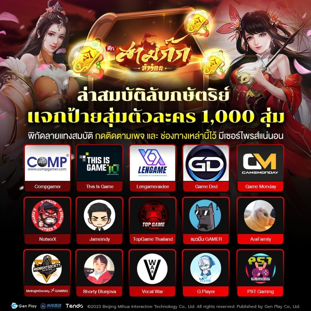 มีหนึ่งในกิจกรรม นอกจากนั้นทางผู้ให้บริการยังจัดกิจกรรม ตามล่าไอเทมโค้ดจาก KOLs – แจก Item Code กว่า 1000 สุ่ม ช่องละ 60 สุ่ม ที่จะมอบไอเทมมากมายแบบฟรีเพียงแค่เข้าร่วมกิจกรรมเท่านั้น หากใครสนใจสามารถติดตามรายละเอียดกิจกรรมและขั้นตอนได้ที่ FB Page: สามก๊กหัวร้อน – 3KH