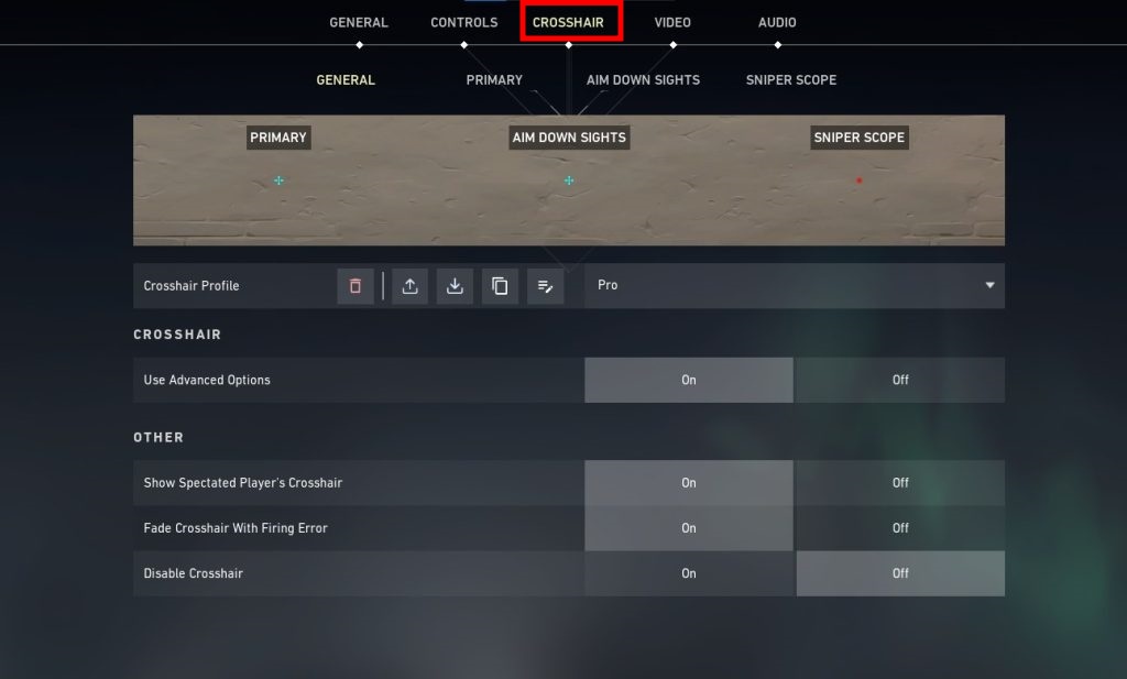 3. เลือกแท็บ “เป้าเล็ง” (Crosshair) ที่เมนูทางด้านซ้าย